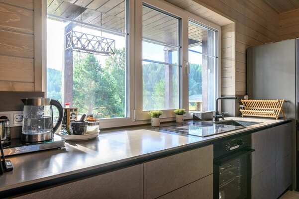 Вилла «Смородина» — ваш идеальный уголок для отдыха, где современные удобства гармонично сливаются с душевной атмосферой русской деревни. Расположенная в заповедной зоне, недалеко от исторического «Мантуров камня», вилла предлагает завораживающие виды на реку и скалы, открывающиеся с живописной набережной.