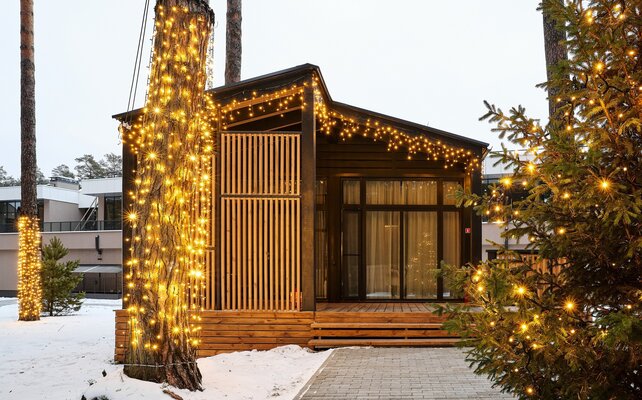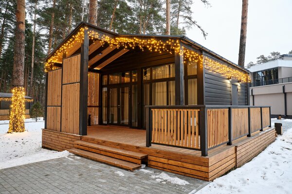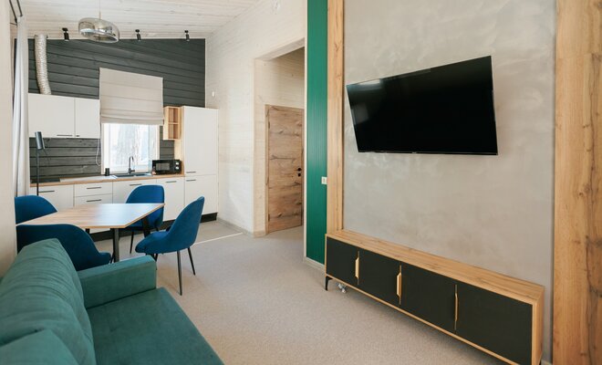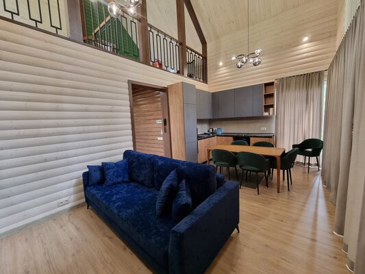 Наши уютные гостевые дома раскинулись на просторной закрытой территории, каждый из которых продуман до мелочей. К вашим услугам: открытая терраса с плетеной мебелью, полностью оборудованная мини-кухня (бытовая техника, вся необходимая посуда), удобные спальные места и гостевая зона с диваном и телевизором. В каждом санузле вас ждут душ или ванна, а также полный набор гигиенических принадлежностей, пушистые полотенца, халаты, тапочки и фен.