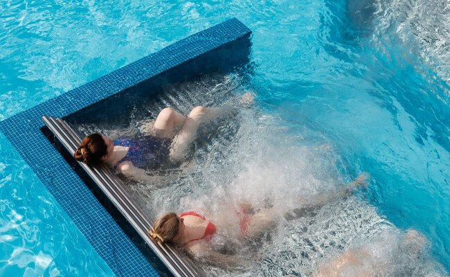 Окунитесь в мир водных наслаждений! В вашем распоряжении три огромных бассейна с подогреваемой артезианской водой общей площадью 935 квадратных метров: просторный открытый, уютный крытый взрослый и веселый детский бассейны, дополненные яркой splash-зоной для самых юных посетителей.
