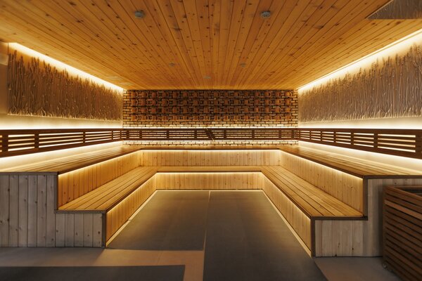 Турецкая баня мягко прогревает мышцы и все суставы, хорошо восстанавливает организм после физических нагрузок. В термах ЮГА стены хаммама меняют цвет, что создает эффект новизны при каждом посещении.