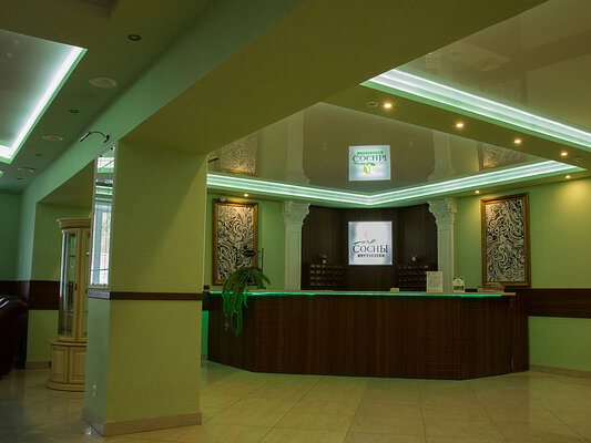 На большой зеленой территории санатория «Сосны» находится один 3-х этажный (без лифта) корпус. Корпус состоит из номерного фонда, столовой, медицинской части и SPA-центра с бассейном и тренажерным залом.