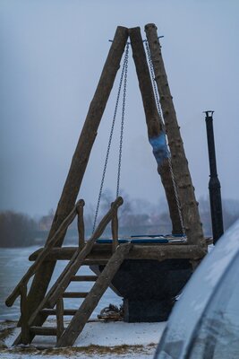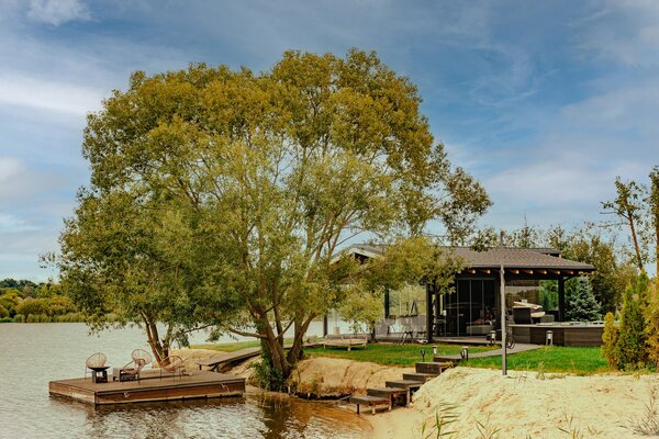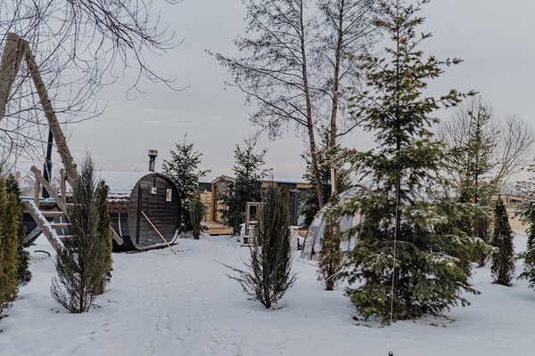 Банный комплекс с Сибирским чаном с джакузи, купольной беседкой с видом на озеро, купелью кристально чистой артезианской водой.