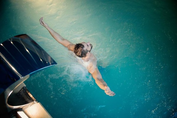 Бассейн с функцией гидромассажа, водопада и цветотерапии дополнен современной системой Pogumax (Погумакс), позволяющей транслировать видео на нестандартных размерах полотна. А зеркала во всю стену обеспечивают эффект погружения в другую реальность. Над бассейном установлена метровая душевая лейка фирмы Rainz (Рэинц) и форсунки тумана для имитации тропического дождя.