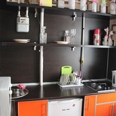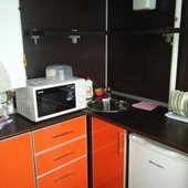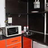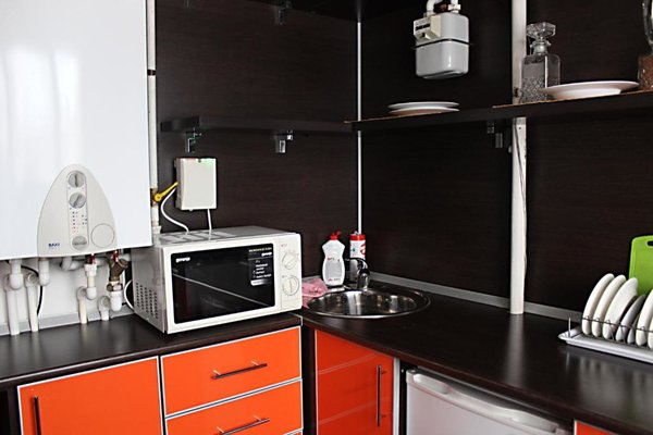 Кухня оснащена духовкой и микроволновой печью.