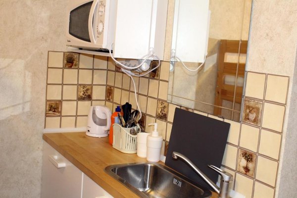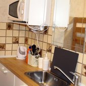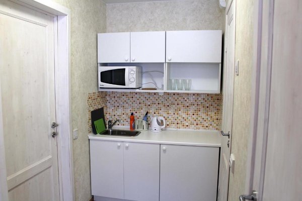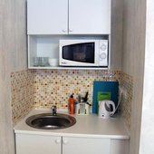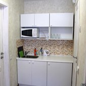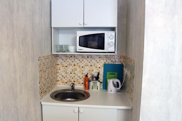 Приготовление блюд по авторским рецептам возможно на собственной мини-кухне с встроенным мебельным гарнитуром и варочной поверхностью, посудой и микроволновой печью. В нескольких шагах есть супермаркеты и магазины, а так же кафе и рестораны с широким ассортиментом меню.