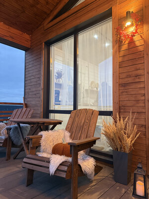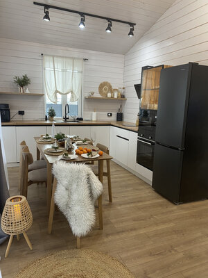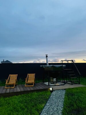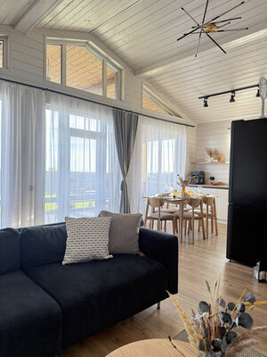 На территории есть зона для барбекю с мангалом и казаном для плова. Просторные панорамные окна создают светлую и уютную атмосферу. Заселение бесконтактное, но хозяева всегда доступны для помощи. Гости могут расслабиться в чане или весело провести время за настольными играми.