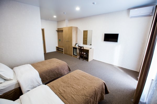 К вашим услугам пять различных категорий номеров, в которых могут разместиться от одного до трех человек. В каждом есть удобные кровати, мягкая мебель, современная техника. Предоставляются полотенца.