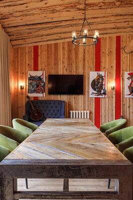 Мебель в номерах изготовлена из экологически чистых материалов, что создает приятную атмосферу и особую связь с природой.