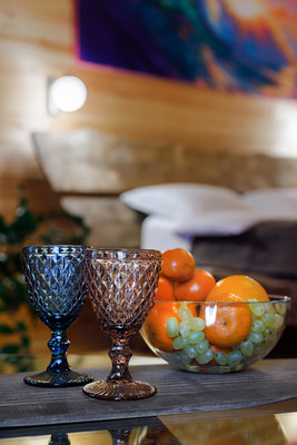 Помимо прекрасной атмосферы, загородный комплекс привлекает внимание своими просторными и светлыми номерами. В каждом номере оригинальный дизайн, большие кровати с ортопедическими матрасами и все необходимые для комфортного проживания. Гости могут воспользоваться бесплатным Wi-Fi, современной системой кондиционирования воздуха, кабельным телевидением и качественным постельным бельем из натуральных материалов. Ванная комната оборудована и имеет подогрев пола.