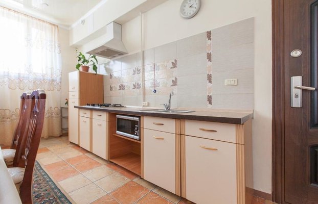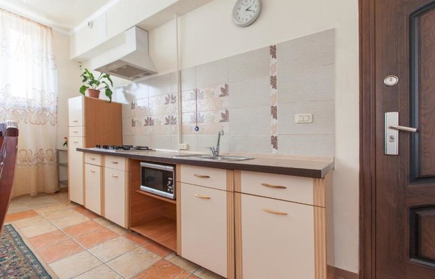 В распоряжении гостей спальня с 1 двуспальной кроватью, ванная комната с ванной, а также кухня с микроволновой печью, плитой и холодильником.