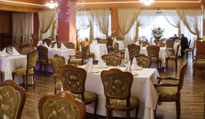 В ресторане сервируется по утрам завтрак. На обед и ужин вы всегда сможете заказать блюда русской и европейской кухни.