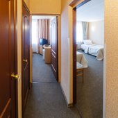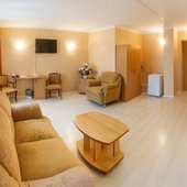 Номера оборудованы односпальными или двуспальными кроватями. Цветовая гамма выполнена в светлых тонах. В ванных комнатах представлен душ, туалет и раковина.