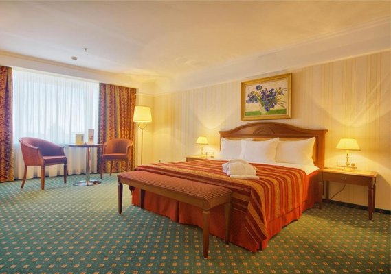 Гостям предлагается большой выбор номеров самых разных категорий, все оснащены сейфом, телефоном, кондиционером и мини-баром. Имеется доступ к бесплатному Wi-Fi. Завершить насыщенный рабочий день предлагается в сауне, бане или же фитнес-центре.