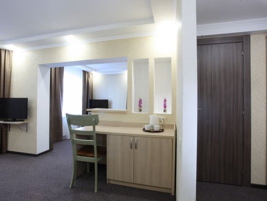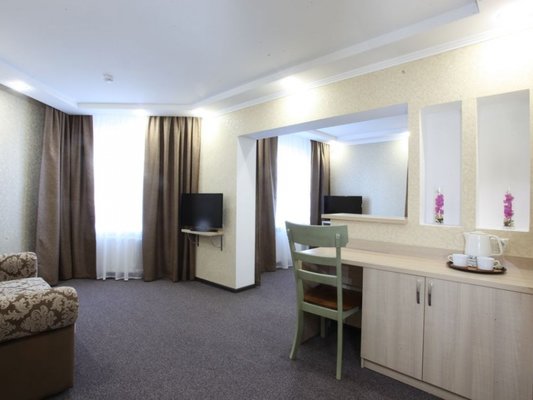 Все номера имеют современный классический дизайн и оборудованы удобной мебелью и техникой: телевизор, холодильник, телефон, кондиционер, фен. В номерах имеется сейф, постельное белье, полотенца, тапочки, ванная комната.