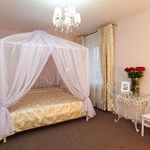 Номерной фонд имеет качественную звукоизоляцию. Новобрачные пары разместят в комфортабельных «Люксах». Номера подключены к централизованной системе отопления, для удобства клиентов предусмотрен LCD-телевизор, кровати «king-size», кондиционер.