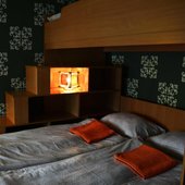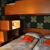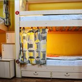 Представлен современный и разнообразный номерной фонд, где можно забронировать номер с подселением. В каждой комнате есть удобные двухъярусные кровати со шторками, розетки, светильники и вешалка. Общий санузел оснащен комплектом полотенец.