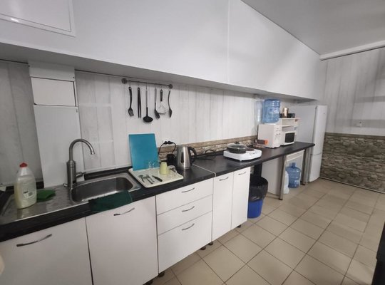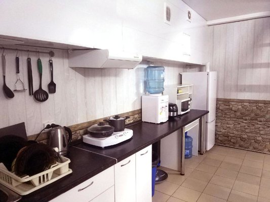 На общей кухне можно приготовить домашние блюда или разогреть еду.