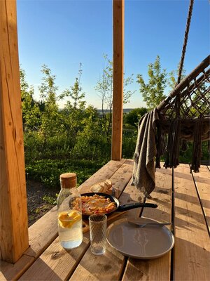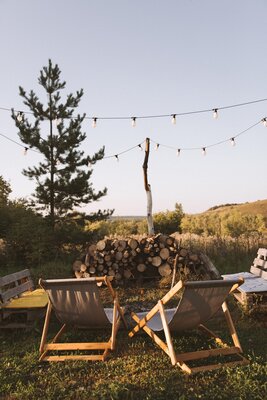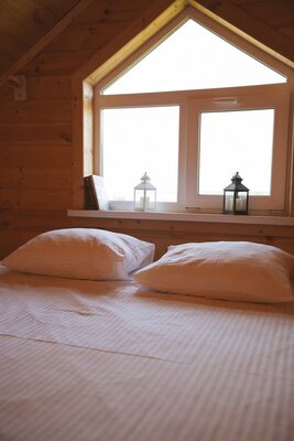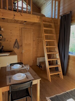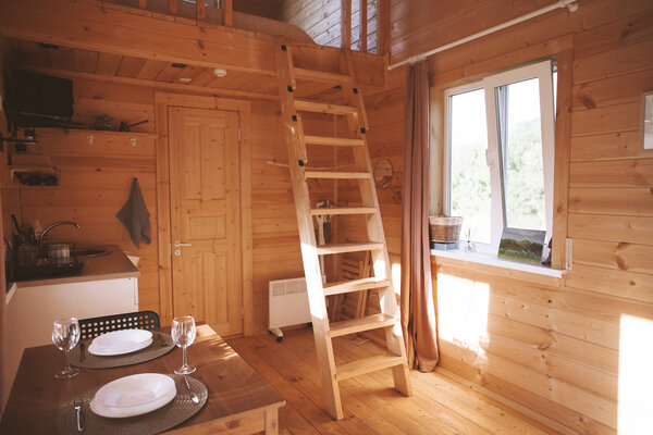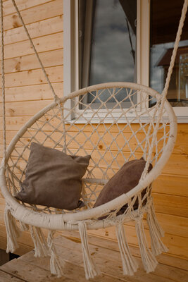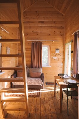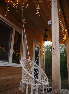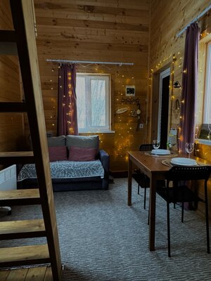 Просторные домики с удобным спальным местом на втором этаже и раскладным диваном на первом, обеспечат комфортный сон под звуки природы. Представьте: ваша вторая половинка отдыхает в подвесном кресле, укутанная пледом, пока вы готовите шашлыки на мангале, наслаждаясь живописным видом.