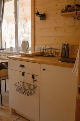 Расположенные вдали от городской суеты, наши домики предлагают все необходимое для полноценного отдыха: оборудованную кухню, Wi-Fi, отопление (работает круглый год), индивидуальную зону барбекю и даже баню на дровах с вениками и полотенцами.