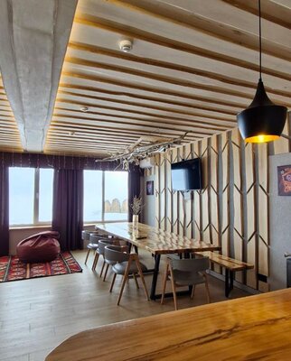 - Просторная комната отдыха (до 20 человек) с банкетным столом, телевизором, музыкальной колонкой.