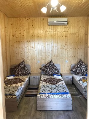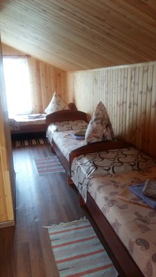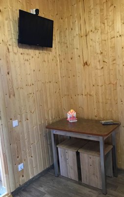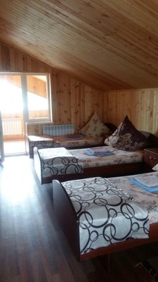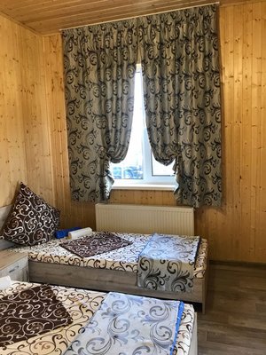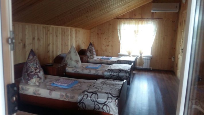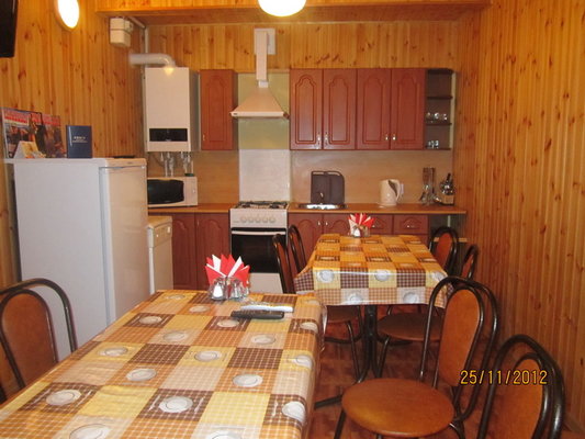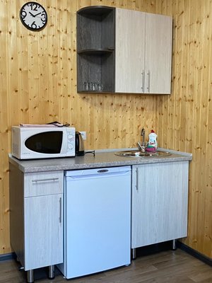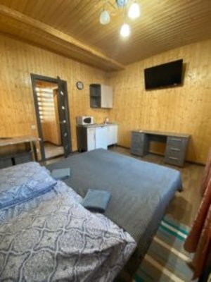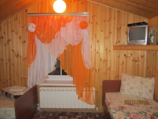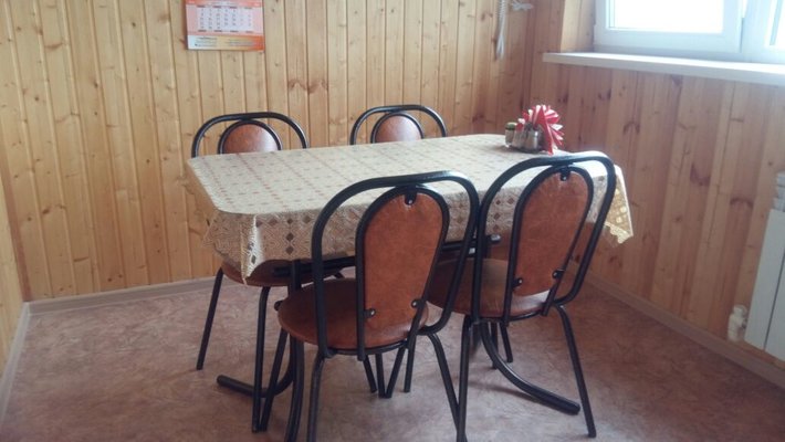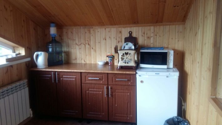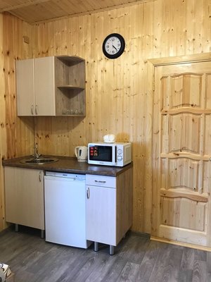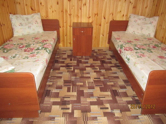 На 1-ом этаже корпуса «Б»- Баня. Баня рассчитана на 10-12 мест. Парная, душевая, раздевалка, санузел и комната отдыха с большим столом, мягкой мебелью, холодильником, микроволновой печью, телевизором, чайником и посудой.