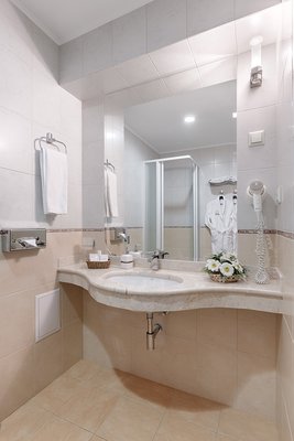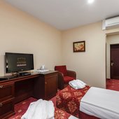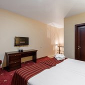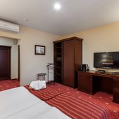 Номера оформлены в пастельных тонах, оснащены кондиционером и обставлены темно-красной мебелью. В числе удобств: плоскоэкранный телевизор, мини-бар. В собственной ванной комнате - халаты, тапочки и фен.