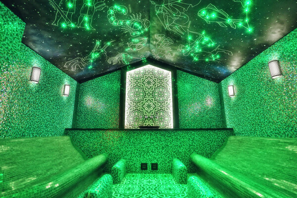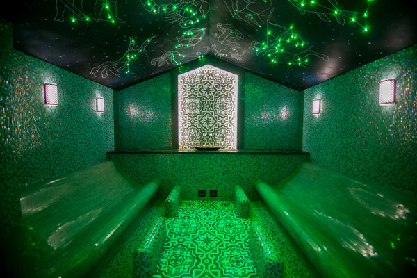 В хаммаме предлагаются роскошные фирменные уходы на косметике Sultan de Saba, включая программы "Золото Кол Гали", "Очарование Юсуфа" и "Сладкие сны Зулейхи", которые обеспечивают незабываемый опыт расслабления и ухода за собой. Этажом выше расположены пять массажных кабинетов, где профессиональные массажисты предлагают различные виды массажа, способствующие восстановлению и гармонии тела и души.