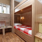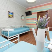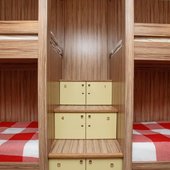 Здесь есть варианты для разного количества гостей. В любом случае это не будет большим ударом для бюджета поездки. Имеется всё для комфортного проживания: кровать, запирающаяся на замок прикроватная тумбочка, стол.