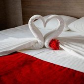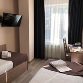 Номерной фонд представлен уютными номерами, в которых можно разместиться от двух и до пяти человек. В каждом из номеров есть все необходимое для комфортного проживания.