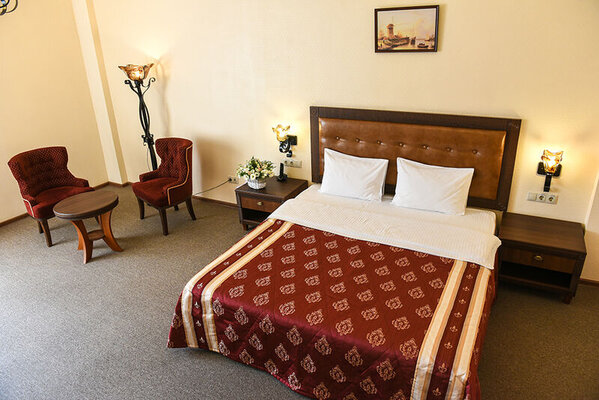 Номерной фонд представлен несколькими категориями. В каждом номере имеется LED-телевизор, телефон, сейф, фен и собственная ванная комната.