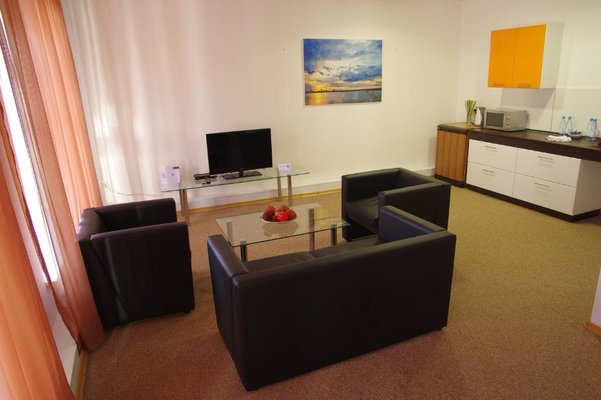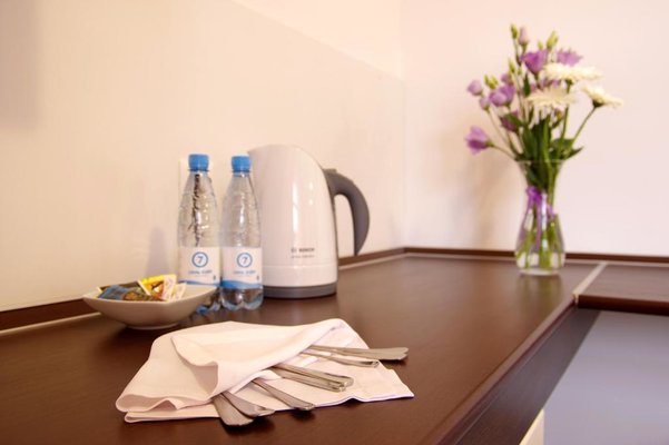 Номерной фонд состоит из 52 комфортных номеров, оборудованных всем необходимым для полноценного отдыха. Дизайн выполнен в современном стиле. В каждой категории есть мини-кухня с посудой, холодильником, микроволновой печью и чайником.