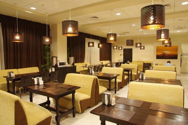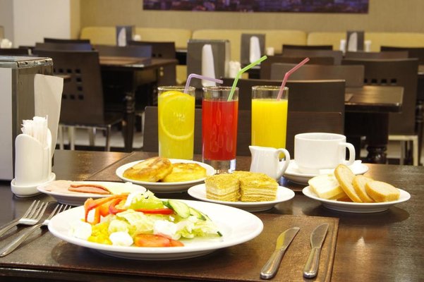 На территории есть ресторан, в котором организованны завтраки по системе «Шведский стол». В остальное время гостям подаются блюда традиционной татарской, а также европейской и итальянской кухни.