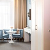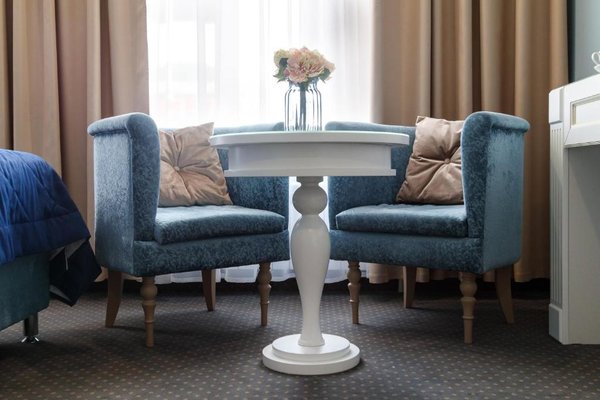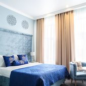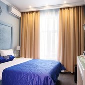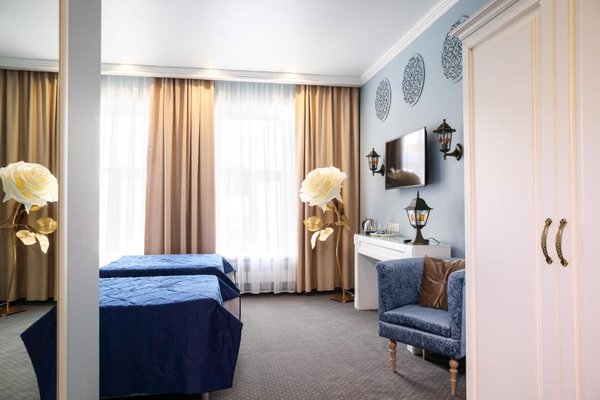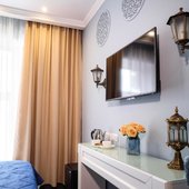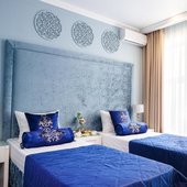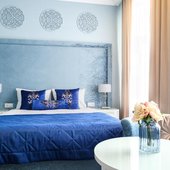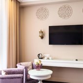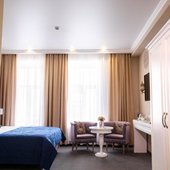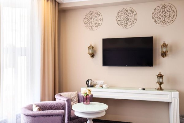 Интерьер выполнен в изысканном и утонченном стиле. Преобладают насыщенные, нежные оттенки, которые искусно отображают местную национальную культуру. Из окон открывается замечательный вид на город. Заселяться можно как одному человеку, так и нескольким людям, можно приезжать и останавливаться семьям с маленькими детьми. Номера имеют всю необходимую технику.