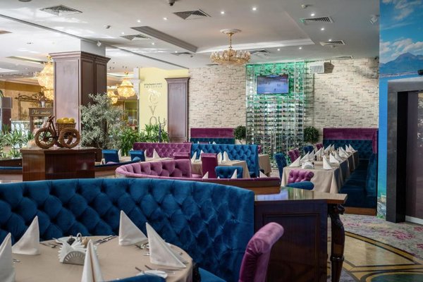 На территории отеля работает бар и ресторан, где представлен широкий ассортимент блюд разных кухонь. Кроме того, гости могут воспользоваться услугой доставки завтрака в номер, который уже входит в стоимость номера.