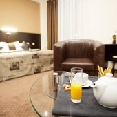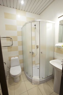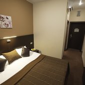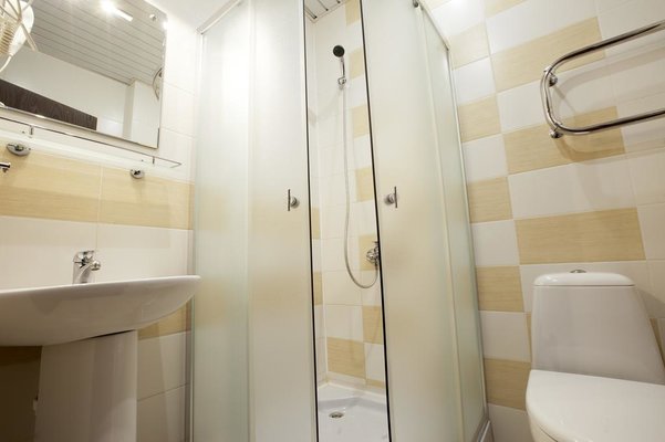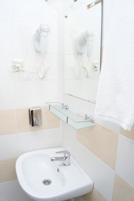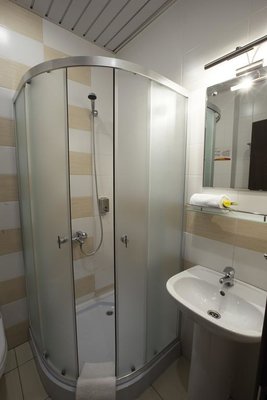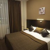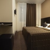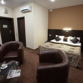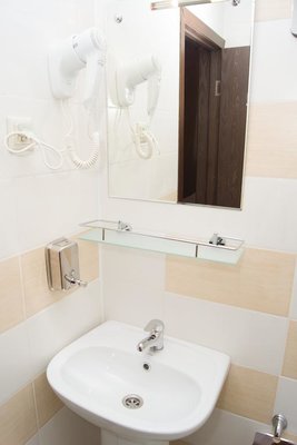 Номера выполнены в светлых классических тонах и имеют необходимую технику и мягкую мебель. В ванных комнатах имеется фен.