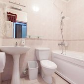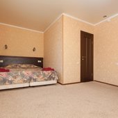 Номера выполнены в светлых тонах, каждый из которых оснащен всем необходимым для комфортного проживания. В комнатах есть удобные спальные места (с бельем), вместительный шкаф, телевизор, ванная (душ) с гигиеническими принадлежностями и туалет.