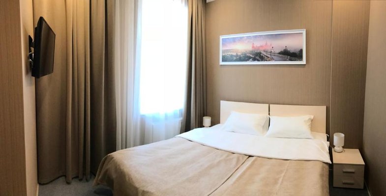 Номерной фонд состоит из нескольких категорий номеров, которые полностью оснащены для продолжительного проживания. Имеется необходимый комплект техники и мебели. В собственной ванной можно воспользоваться набором средств личной гигиены.