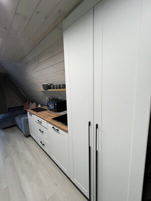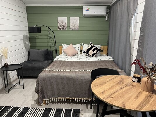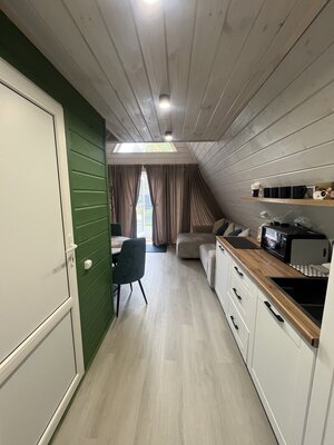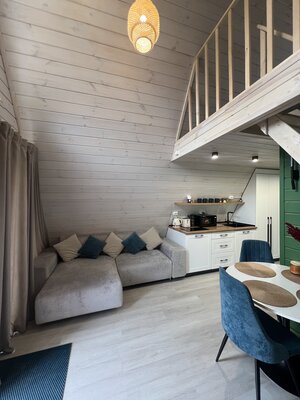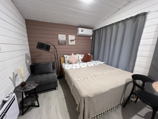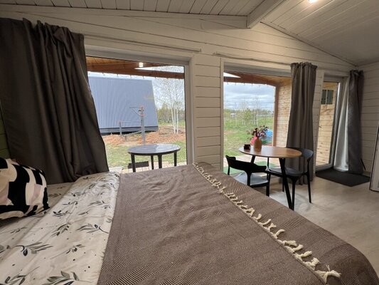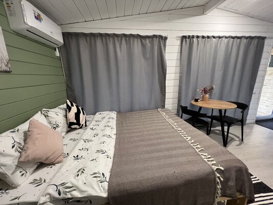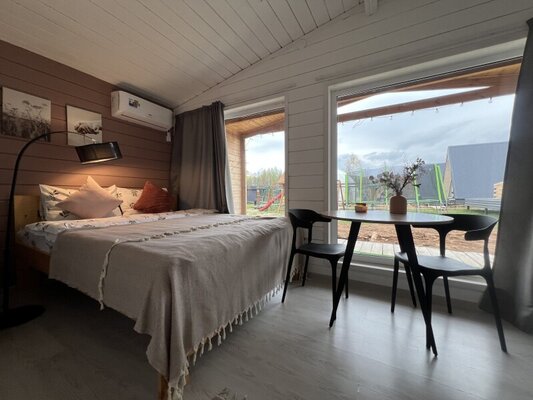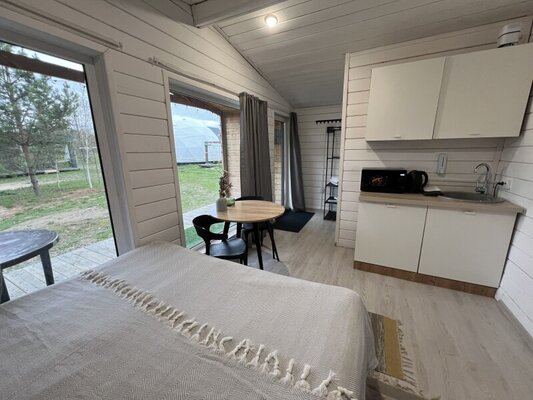 Каждый из домиков создан для вашего круглогодичного комфорта. Внутри вас ждет все необходимое: автономное отопление и кондиционер, собственные ванные комнаты с душем, полноценная кухня со всей необходимой техникой и утварью, а также уютные спальные места с комфортными кроватями и теплыми одеялами. Просторные террасы с индивидуальной зоной барбекю приглашают насладиться трапезой и безмятежным отдыхом на свежем воздухе.