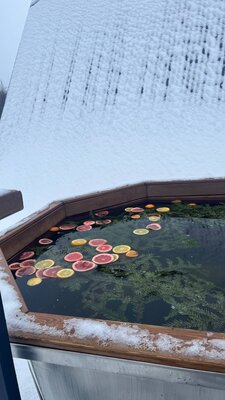Снимите напряжение в горячем банном чане под открытым небом. Свежий воздух, аромат пихты, природа.