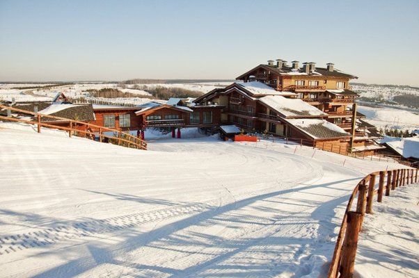 - развитую инфраструктуру: 10 ресторанов и кафе, 4 гостиничных комплекса и более 100 домиков-шале ;общей вместимостью до 1500 гостей;