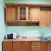 Помимо этого, имеется кухня для самостоятельного приготовления. Можно воспользоваться холодильником и электрическим чайником.