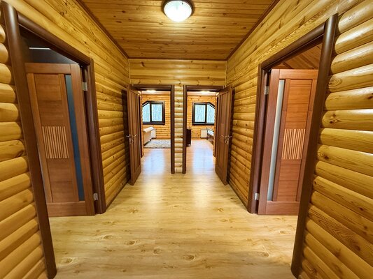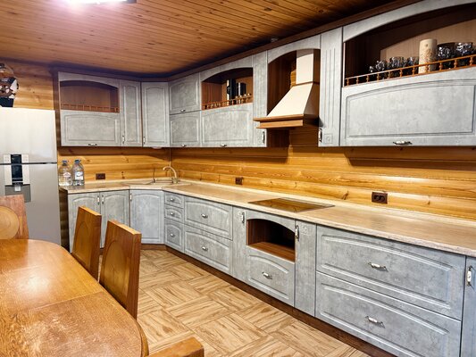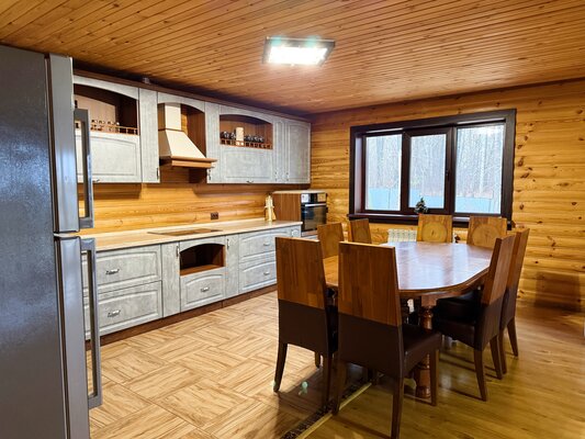 Уютный дом готов принять гостей с комфортом: полностью оборудованная кухня с холодильником, варочной панелью, микроволновкой, чайником и полным набором посуды для приготовления и сервировки. Для удобства — три ванные комнаты с душем, комплект полотенец и туалетно-косметическими принадлежностями. В общей зоне установлен большой телевизор для совместного просмотра.