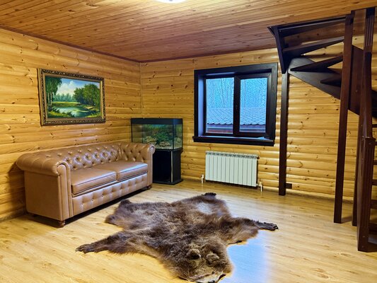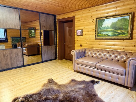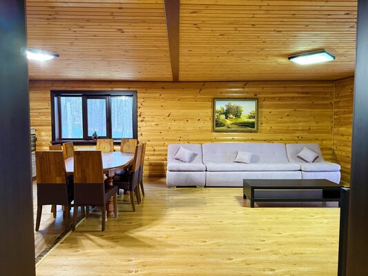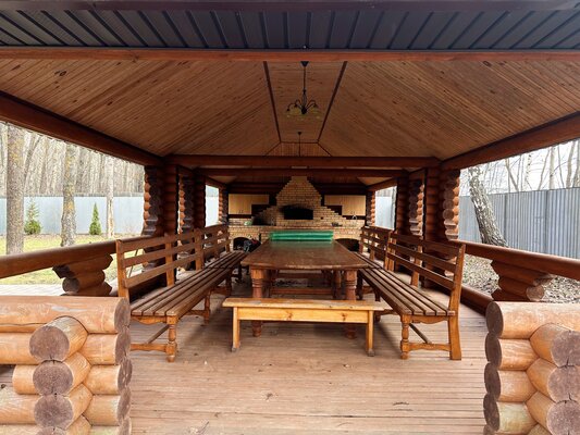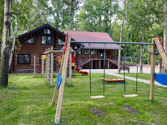 На благоустроенной огороженной территории гостей ждёт баня с комфортной парной и бассейном (услуга оплачивается отдельно). На свежем воздухе можно отдохнуть в просторной беседке с зоной барбекю и обеденным столом на десять персон. Юных гостей порадует детская площадка, а для активных игр предусмотрено большое футбольное поле.