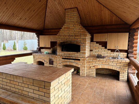Большая и уютная беседка с зоной барбекю и обеденным столом на десять человек.