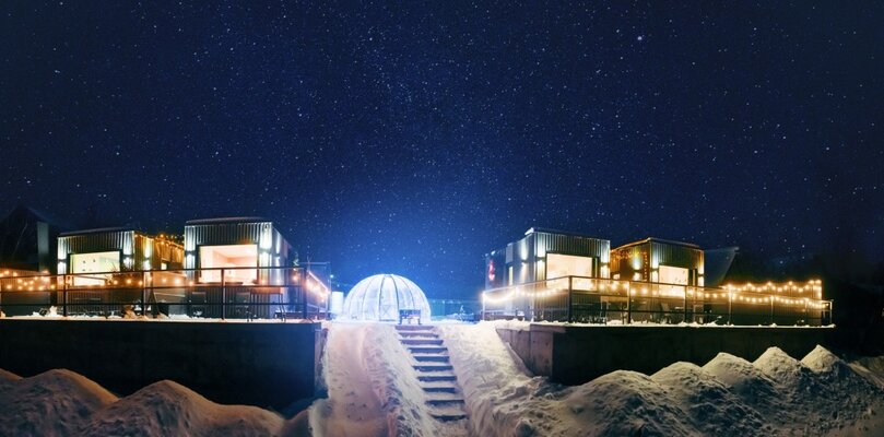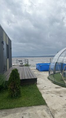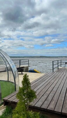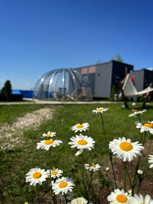 Для небольших компаний, которые хотят отдохнуть на природе, но в тепле, доступна купол-беседка с абсолютно прозрачной крышей. Вместимость — максимум 8 человек.