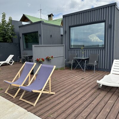 У каждого дома оборудованная терраса для загара, приготовления шашлыка и приятного препровождения за столиком.