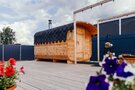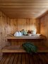 Каждый домик имеет собственную террасу с личной баней на дровах, рассчитанной на четверых и расположенной рядом с фурако. Здесь предусмотрены помывочная и небольшая комната отдыха. Гостям предоставляются удобные полотенца, халаты и тапочки, а для любителей парения доступны дубовые веники за дополнительную плату.