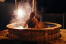 Сидя в теплой купели, гости могут любоваться закатом над озером в любое время года. Для подготовки купели требуется предварительное бронирование и около пяти–восьми часов на нагрев, поэтому рекомендуется планировать визит заранее.