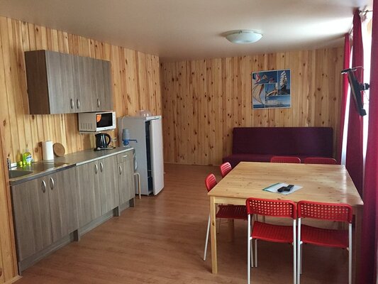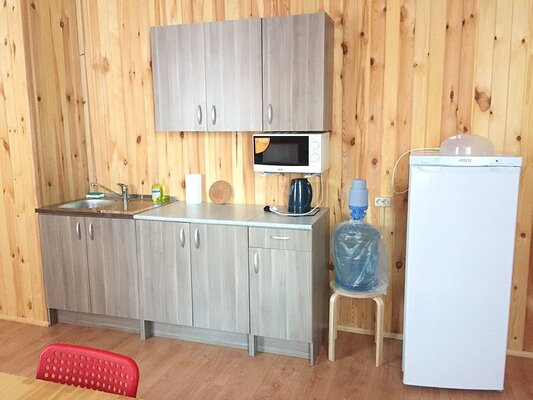 На базе отдыха «Займище» каждый вариант размещения оснащен уютным кухонным уголком, предоставляющим возможность гостям готовить любимые домашние блюда в удобной обстановке. В вашем распоряжении будут все необходимые кухонные принадлежности: микроволновая печь, чайник и холодильник, а также питьевая вода и набор столовой посуды, включая тарелки, приборы, чашки и стаканы.