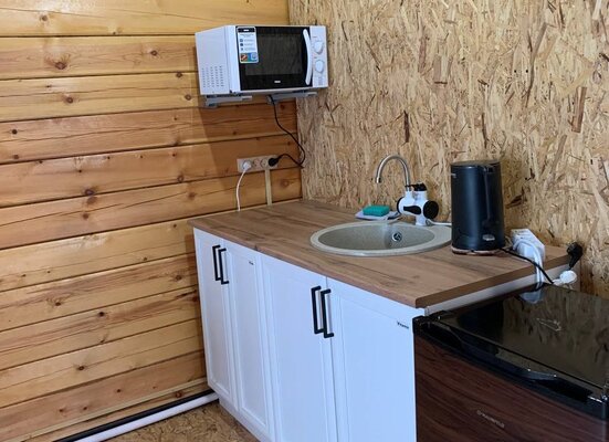 На курорте предлагаются комфортабельные домики для размещения до 6 человек. В номерах, оформленных в минималистичном стиле, есть все необходимое для комфортного отдыха: матрасы-трансформеры, диван, набор посуды, микроволновая печь, плита, холодильник, ТВ, а также отдельные санузлы на территории.